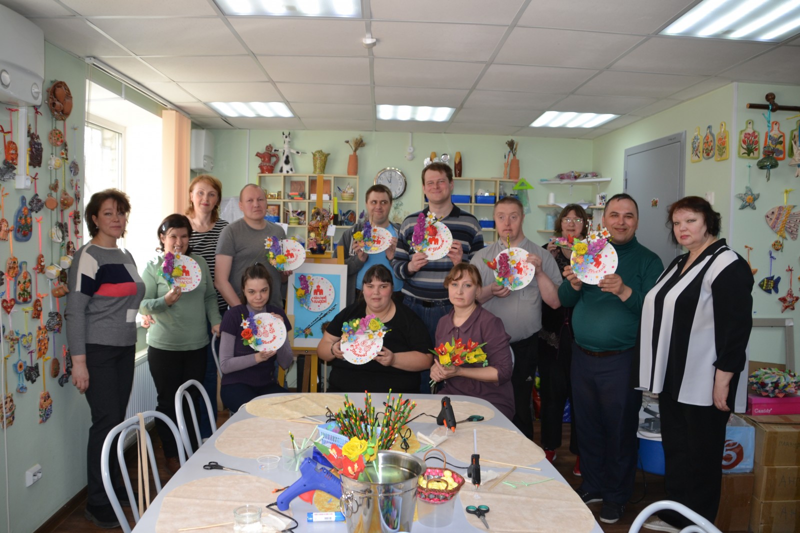 Активное участие в рамках акции «Добрый субботник» принимает и наш Центр. Так, в период с 3 по 13 апреля социально-трудовым отделением была организована акция по сбору бросового материала – бумажных ячеек для яиц, одноразовых тарелок, веточек и др., из которых затем в рамках творческих занятий «Светлая Пасха» были изготовлены очень красивые поделки.