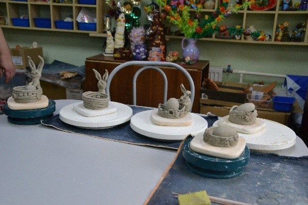В процессе мастер-класса, каждый участник создал свою уникальную пасхальную подставку для яиц, погружаясь в искусство и мастерство лепки.