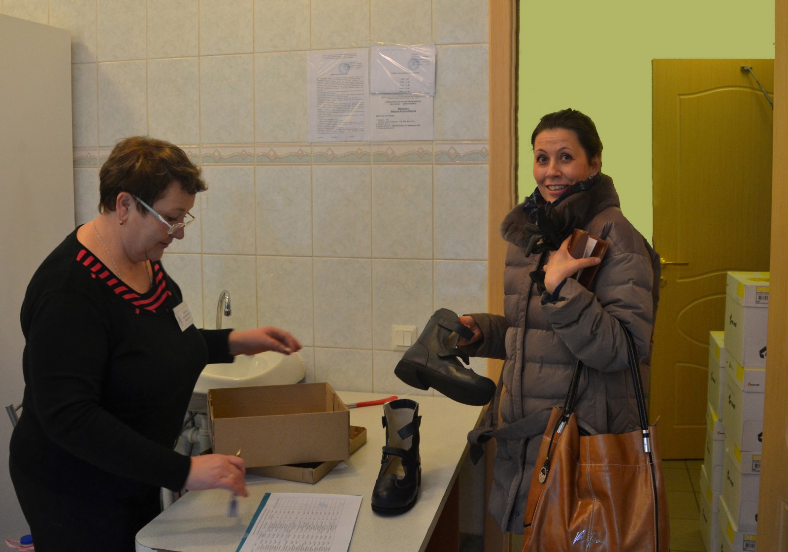 Выдача сложной и малосложной протезно-ортопедической обуви для детей-инвалидов и инвалидов трудоспособного возраста 10.02.1610 февраля 2016 года состоялась очередная выдача протезно – ортопедических изделий, заказанных еще в 2015 году. Обладателями качественной ортопедической обуви стали 12 детей - инвалидов и 2 инвалида трудоспособного возраста. В этот раз клиенты получили кожаные ботиночки, сапожки, туфли детские демисезонные из замши и летнюю обувь. В адрес специалистов отделения социально-медицинского сопровождения прозвучали слова благодарности от родителей и просьба продолжать начатую работу в данном направлении.