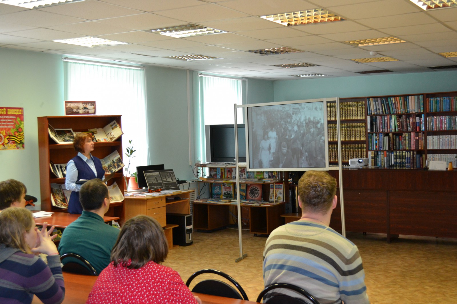 Посещение детской районной библиотеки. Тематическое занятие, посвященное Дню Победы «Войной испепеленные года» 05.05.16