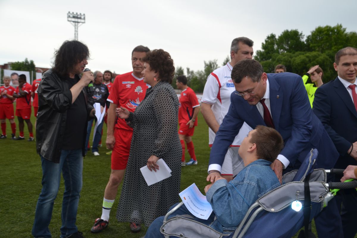 XII Всероссийская благотворительная акции «Под флагом Добра!» 15.06.1615 июня на стадионе «Ижорец» в нашем любимом городе состоялся футбольно-музыкальный фестиваль «Арт-футбол», входящий в программу XII Всероссийской благотворительной акции «Под флагом Добра!», которая проходит под эгидой Х. Х. Петербургского международного экономического форума. Перед зрителями выступили популярные артисты эстрады, театра и кино, играющие за футбольную команду «Росич-Старко». А чуть позже состоялся благотворительный матч между командой "Росич-Старко" и объединенной командой Правительства Санкт-Петербурга и партии "Единая Россия". Как заметили выступающие, основная фестиваля — благотворительность. В этот раз помощь оказана трем семьям из Колпино, для которых приобретены современные инвалидные кресла-коляски. Дети из двух семей, Журавлев Владислав и Дольников Владимир, являются клиентами социально-реабилитационного отделения нашего Центра. Акция «Под флагом Добра!» стала важным событием для наших ребят. Читать подробнее: https://new.vk.com/public87193871?w=wall-87193871_742