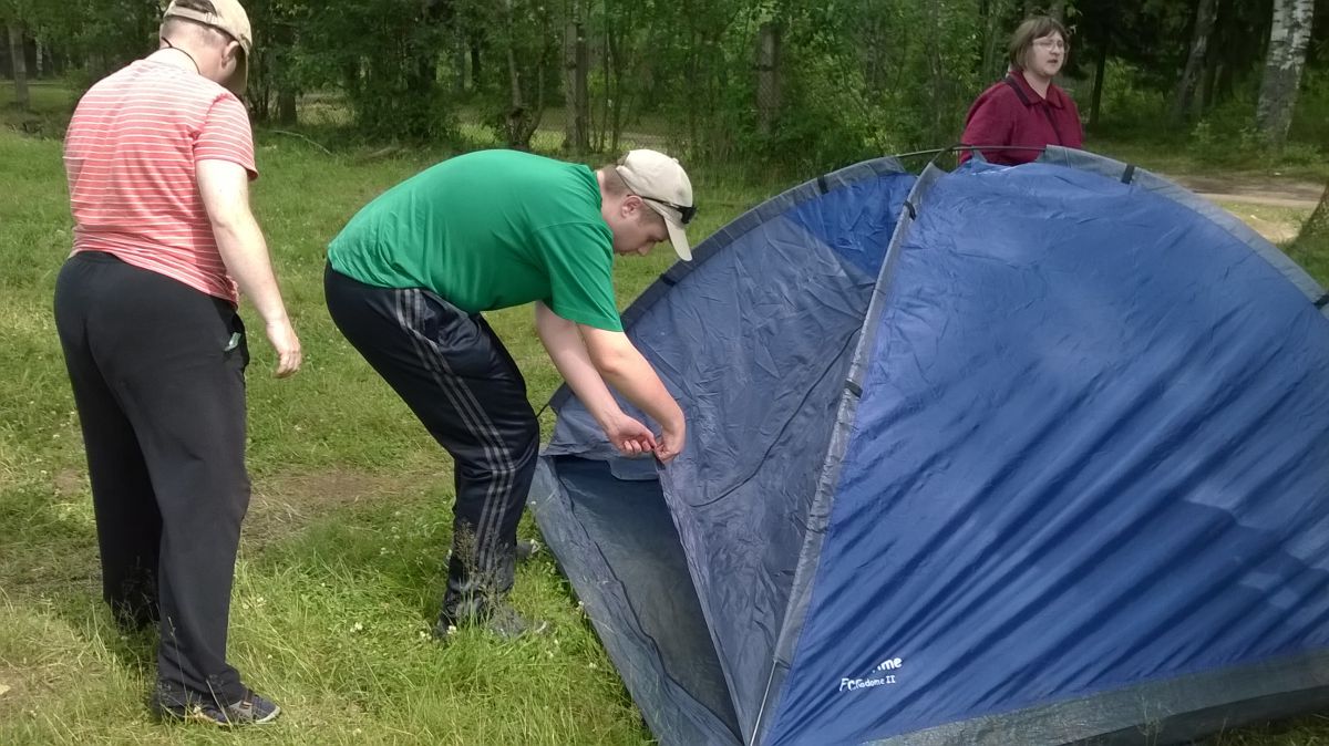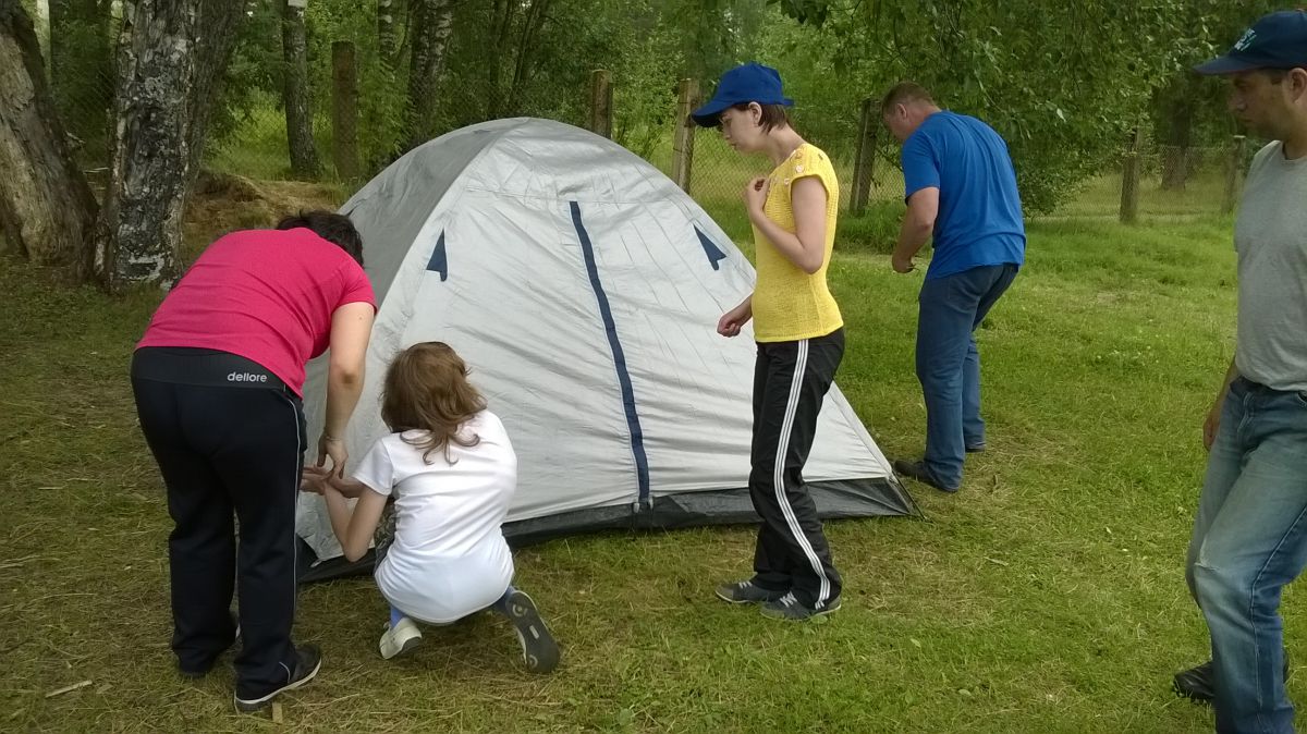 Выездной тренинг по программе «Канистерапия» 30.06.16![]() 30 июня ребята и специалисты нашего Центра приняли участие в однодневном походе по программе канистерапии, который проходил в п. Шапки. Программа похода включала в себя: построение, разбивку палаточного лагеря, легкий завтрак, соревнования, прохождение испытаний на полосе препятствий с участием собак, обед и подведение итогов. Ребята активно принимали участие в мероприятии, взаимодействую между собой и с собаками. Такие походы уникальны и незабываемы. Это хорошая возможность отвлечься от городской шума, отдохнуть на лоне природы и принять участие в спортивных программах. Кроме того, в таких походах крепнет дружба, укрепляются отношения в коллективе, ребята совершенствуются физически и духовно, повышают активность в самообслуживании.