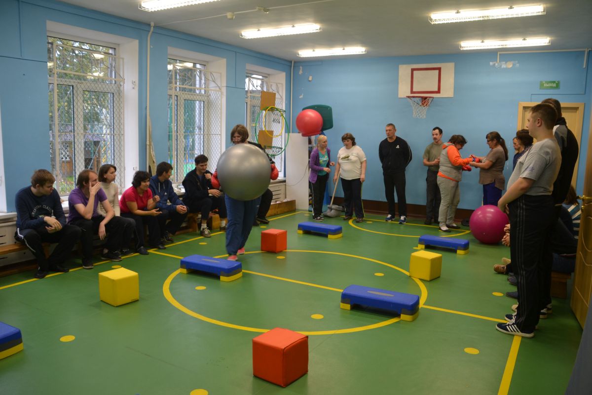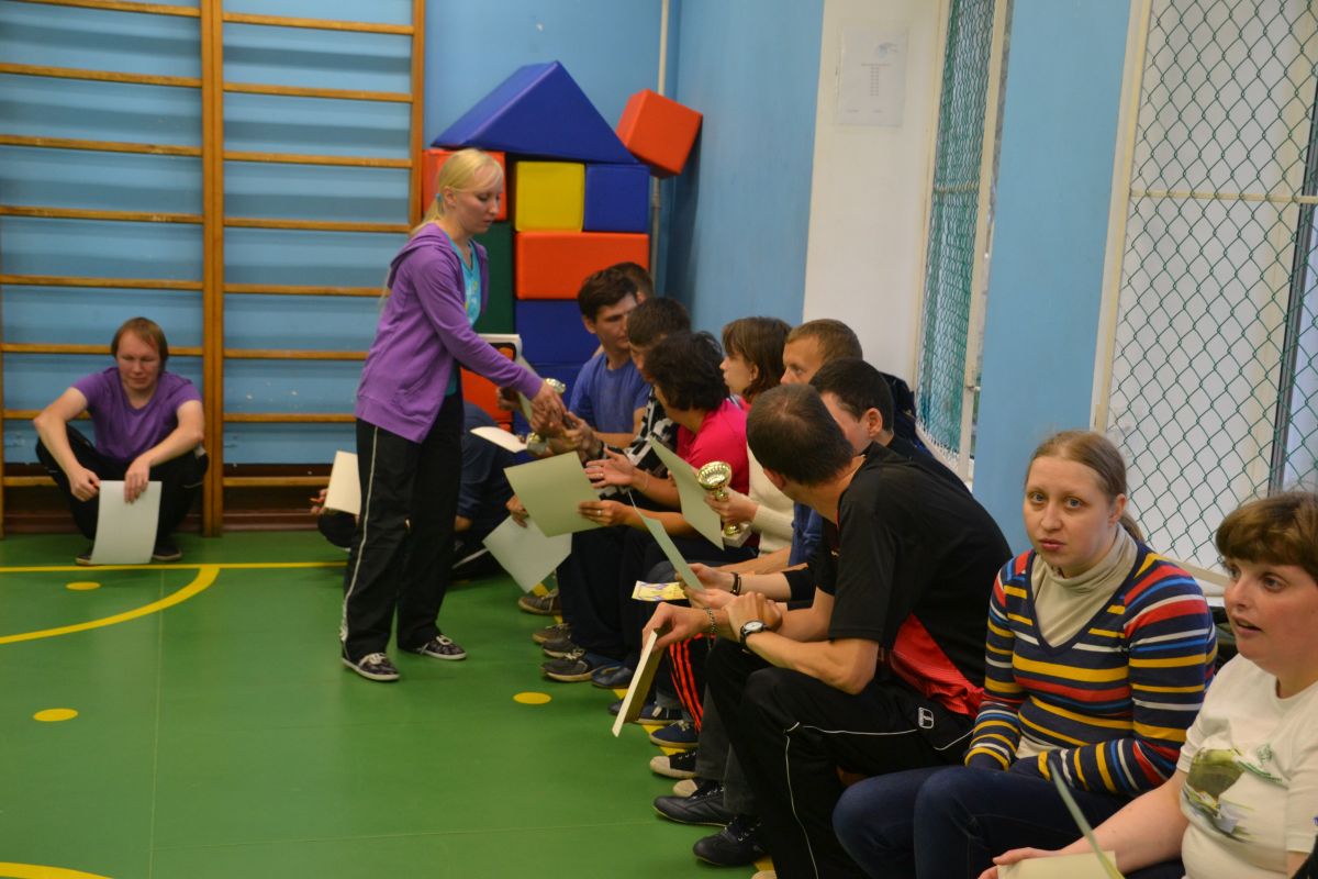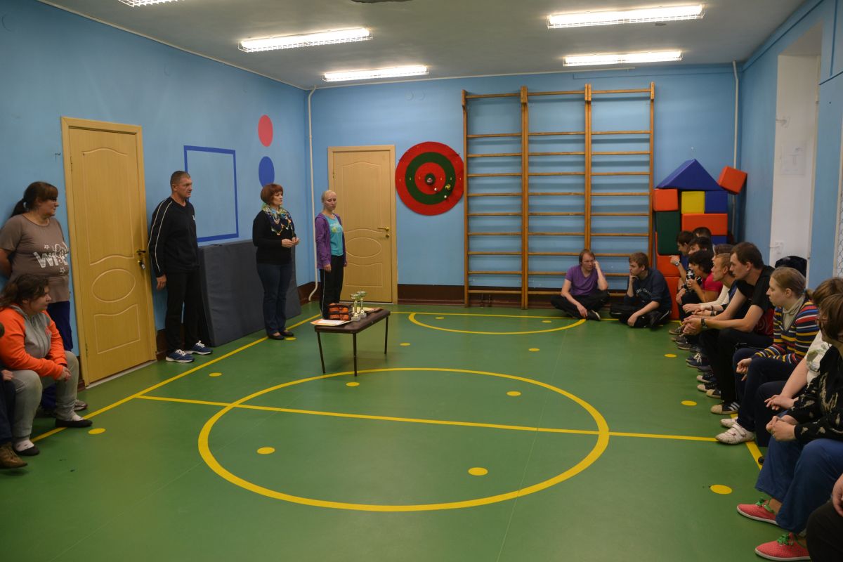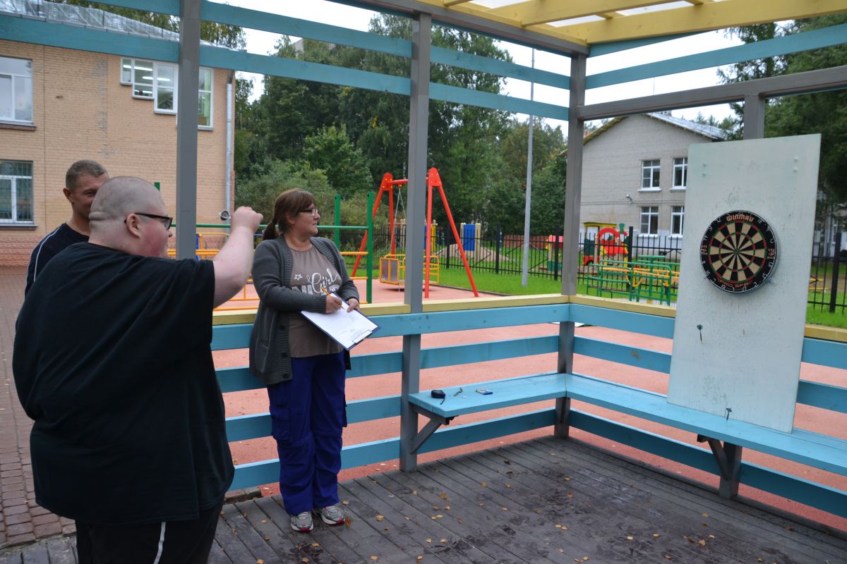 Затем мероприятие продолжилось на игровой площадке перед зданием нашего Центра под теневым навесом (дартс) и в спортивном зале (эстафеты, подвижные игры, бочче, пионербол). К сожалению,погода была ненастная, однако эта сырость не испортила никому настроения. Для участия в подвижных играх и эстафетах ребята разделились на две команды по 10 человек в каждой.  Соревнования были задуманы таким образом, чтобы каждый участник смог проявить свою ловкость, быстроту, меткость и смекалку, при этом понимая, что это командная игра, а значит победа зависит от общих усилий.