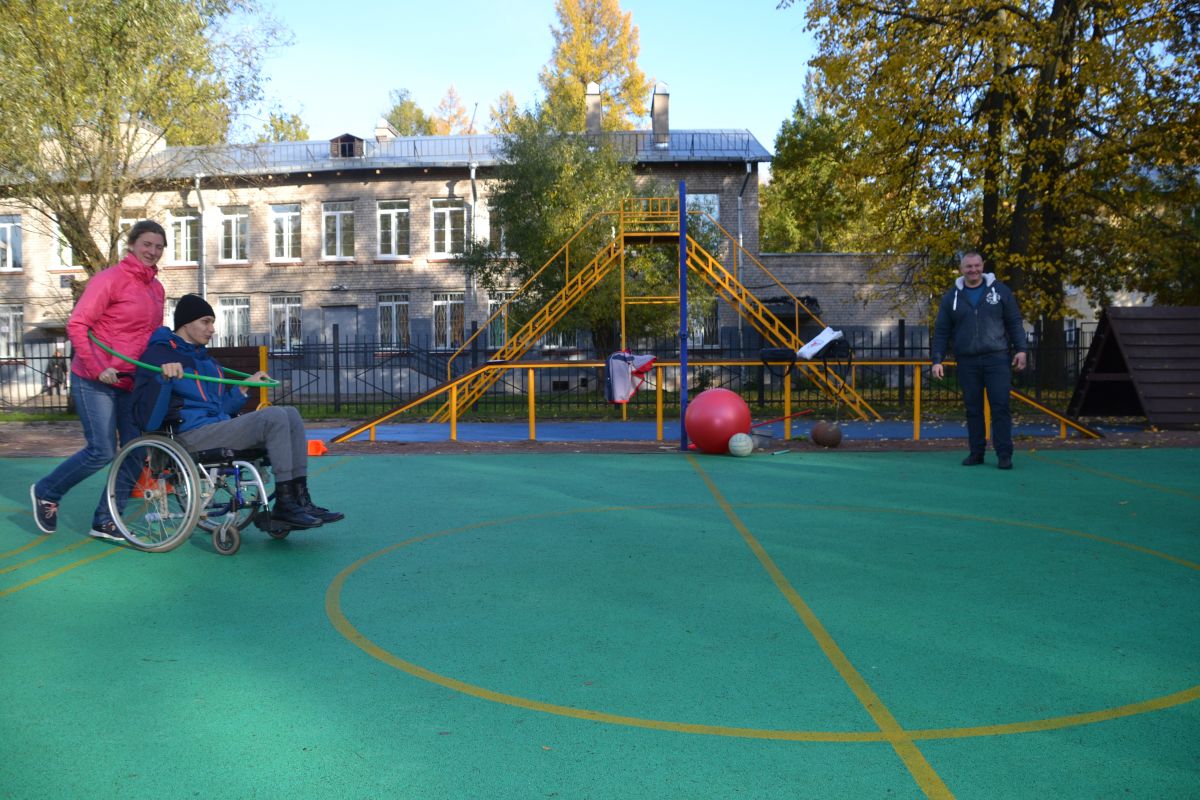 Затем мероприятие продолжилось перед зданием нашего Центра (эстафеты, бочче, дартс). К счастью,погода была замечательная, настроение у всех приподнятое. Соревнования были задуманы таким образом, чтобы каждый участник смог проявить свою ловкость, быстроту, меткость и смекалку, при этом понимая, что это командная игра, а значит победа зависит от общих усилий.