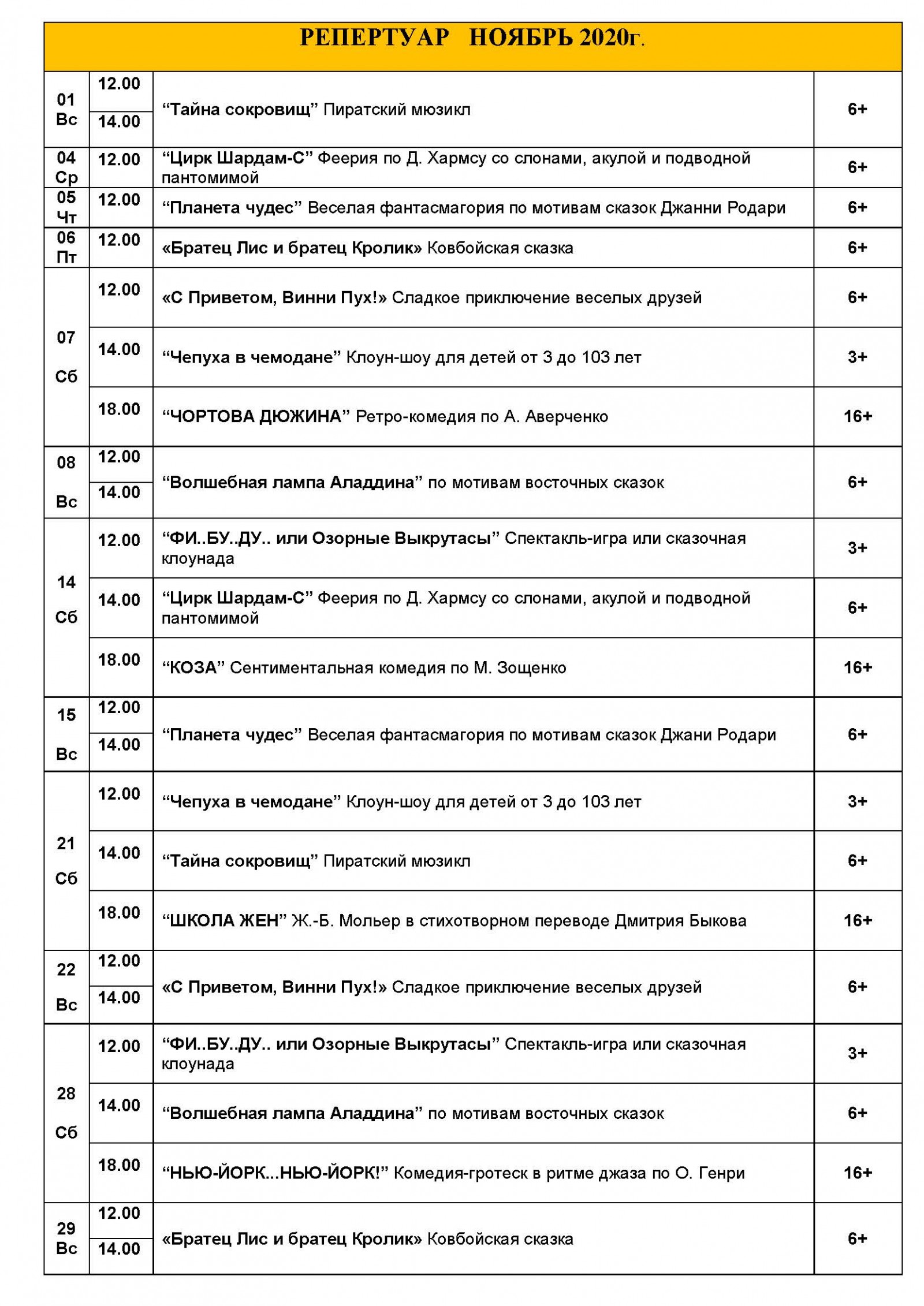 Предлагаем Вашему вниманию льготный репертуар на ноябрь. Цена билета - 300 рублей.