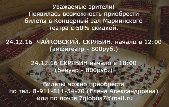 Билеты в Концертный зал Мариинского театра с 50% скидкой