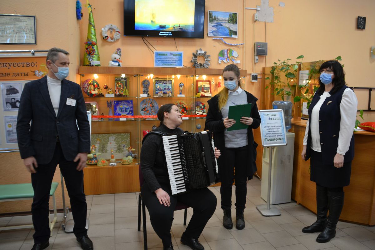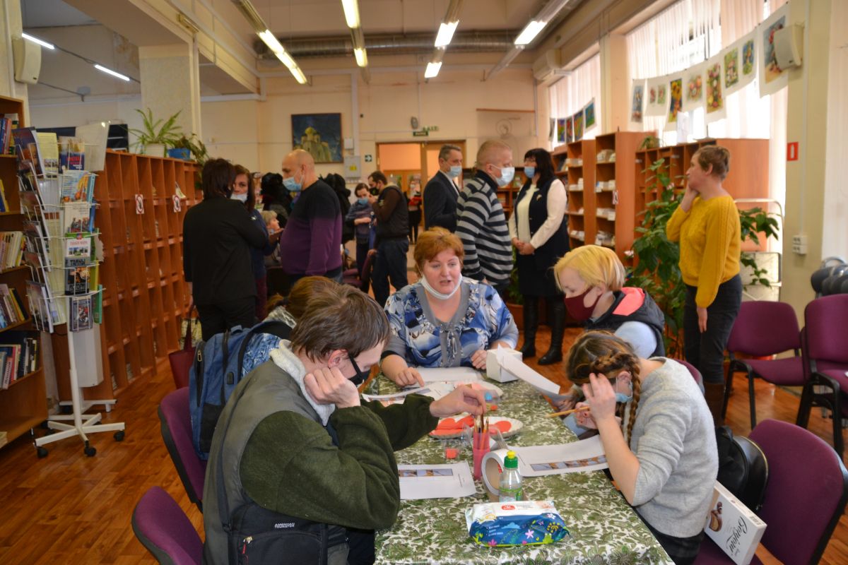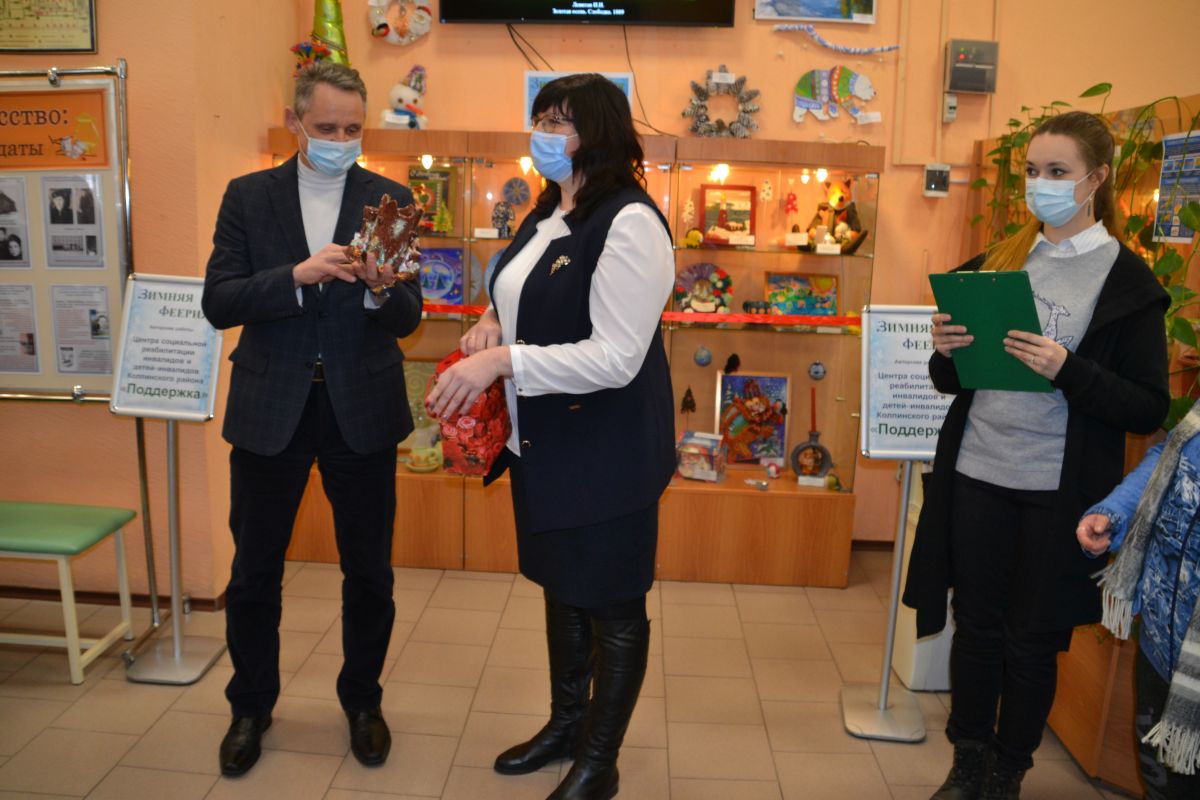 5 февраля в библиотеке им. Светлова состоялось открытие выставки творческих работ ребят, посещающих наш Центр, «Зимняя феерия». На мероприятии выступили: Степанов Игорь Анатольевич, директор Централизованной библиотечной системы Колпинского района Санкт-Петербурга, и Назарова Ольга Николаевна, директор нашего Центра. Игорь Анатольевич поблагодарил ребят и сотрудников за замечательную выставку. В ответ Ольга Николаевна подарила органайзер, выполненный руками наших ребят.