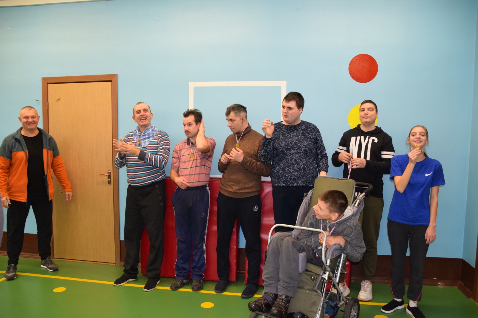 Тематическое физкультурное занятие «Тренировочной день» 09.11.2021Сегодня, 9 ноября, в нашем Центре состоялось тематическое физкультурное занятие для лиц с тяжелыми и множественными нарушениями здоровья «Тренировочной день», цель которого активизация процесса социальной адаптации лиц. В мероприятии участвовали получатели социальных услуг отделения дневного пребывания. По окончании занятия все участники получили медали.