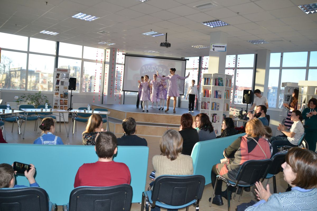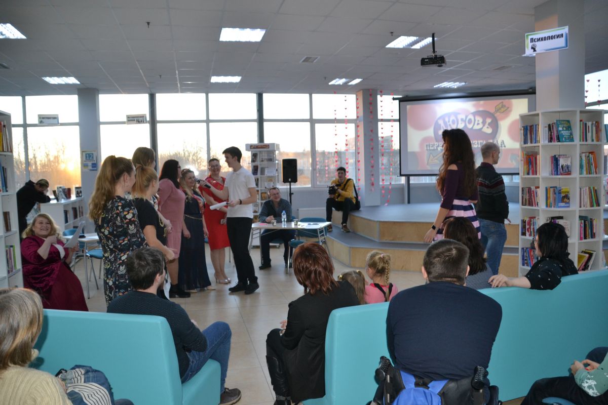 Игра-викторина "Любовь с первого взгляда" 26.02.2022 26 февраля в библиотеке ЦБС Колпинского района (филиал №6) состоялась игра-викторина "Любовь с первого взгляда". Три пары участников прошли захватывающие испытания в борьбе за призы. Добровольческое объединение "Колясочники Колпино" совместно с нашим Центром проводит это мероприятие уже третий год подряд. Весь вечер на сцене выступал танцевальный коллектив студии МЯТА Dance (музыкальный руководитель - Наследухова Елена), а завершилась встреча выступлением Зои Ивановой.