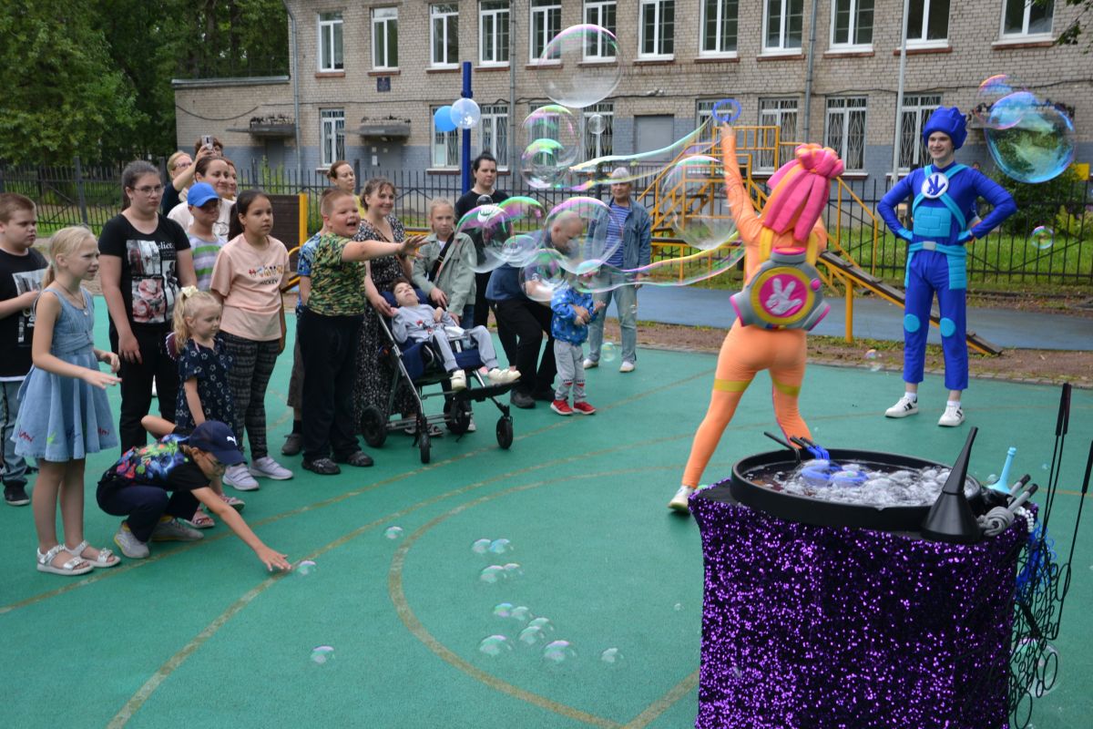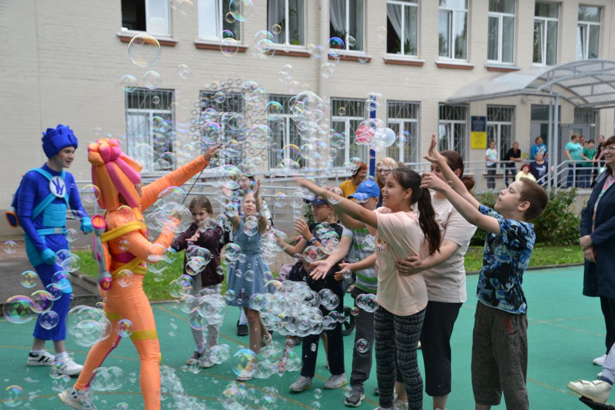 Игровая программа «Яркие краски лета» 03.08.2023Дорогие друзья! Все дети обожают лето, ведь это самое яркое и веселое время года! Для ребят это пора долгожданных каникул, где их ждёт тепло, радость и море положительных эмоций, масса увлекательных занятий и новые интересные знакомства! Этому замечательному времени года и была посвящена сегодня игровая программа «Яркие краски лета», которую провели наши любимые и верные друзья - Алена и Макар - артисты студии праздника «Радужный поезд». Мероприятие прошло в игровой форме, очень весело и задорно! Герои известного мультика «Фиксики» сумели поднять детям настроение и вызвать массу положительных эмоций, а главное создать атмосферу дружбы и доверия, чтобы все почувствовали себя сплочённой командой. Кроме наших ребят, посещающих группы дневного пребывания, на празднике присутствовали и дети паллиативного отделения, состоящие на обслуживании в Детской городской больнице № 22. Большую радость у ребятишек вызвало появление специально обученных собак - канистерапевтов, которых можно было погладить и даже покормить. Прекрасным сюрпризом для всех присутствующих стало шоу мыльных пузырей, демонстрация которого вызвала необыкновенный восторг в детских глазах, погрузила в мир волшебства и красоты! В конце праздника все ребята получили яркие подарки!