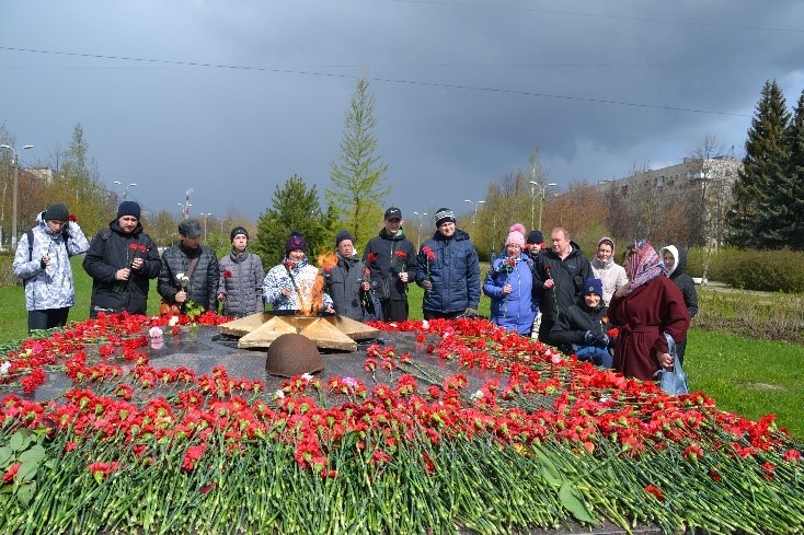 В этот же день состоялось возложение цветов к стеле «Город воинской славы», где ребята почтили память героев минутой молчания.