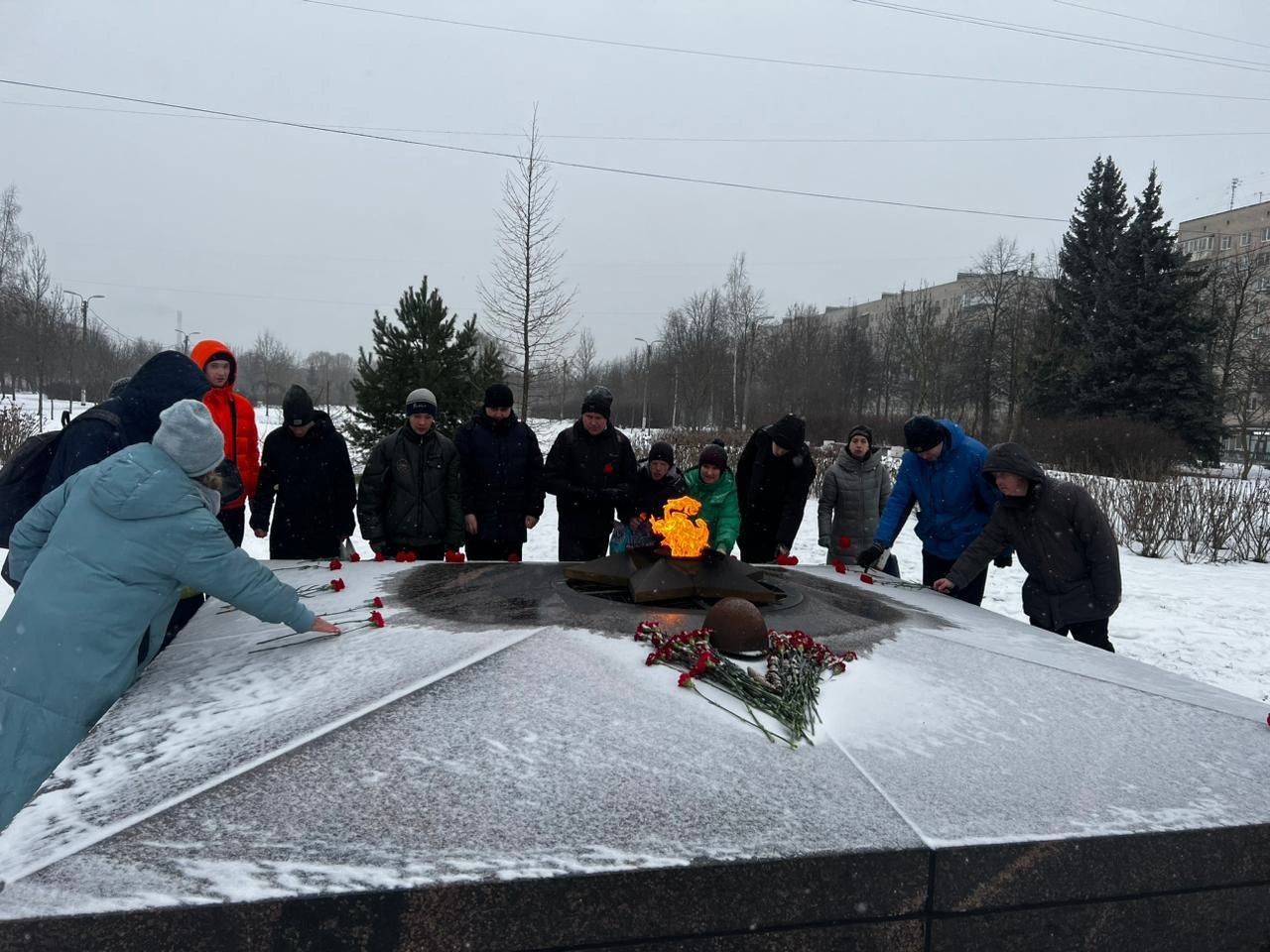 В заключение мероприятия все присутствующие почтили память ленинградцев, погибших во время блокады, минутой молчания. После занятия ребята в сопровождении специалистов прошествовали к стеле «Город воинской славы», где приняли участие в торжественном мероприятии и возложили цветы к Вечному огню.