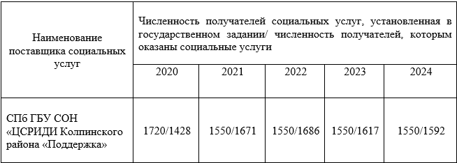 Численность получателей социальных услуг, установленная в государственном задании, а также численность получателей социальных услуг, которым оказаны социальные услуги в Центре Сведения об объёме предоставляемых социальных услуг за счет бюджетных ассигнований представлены в следующей таблице: