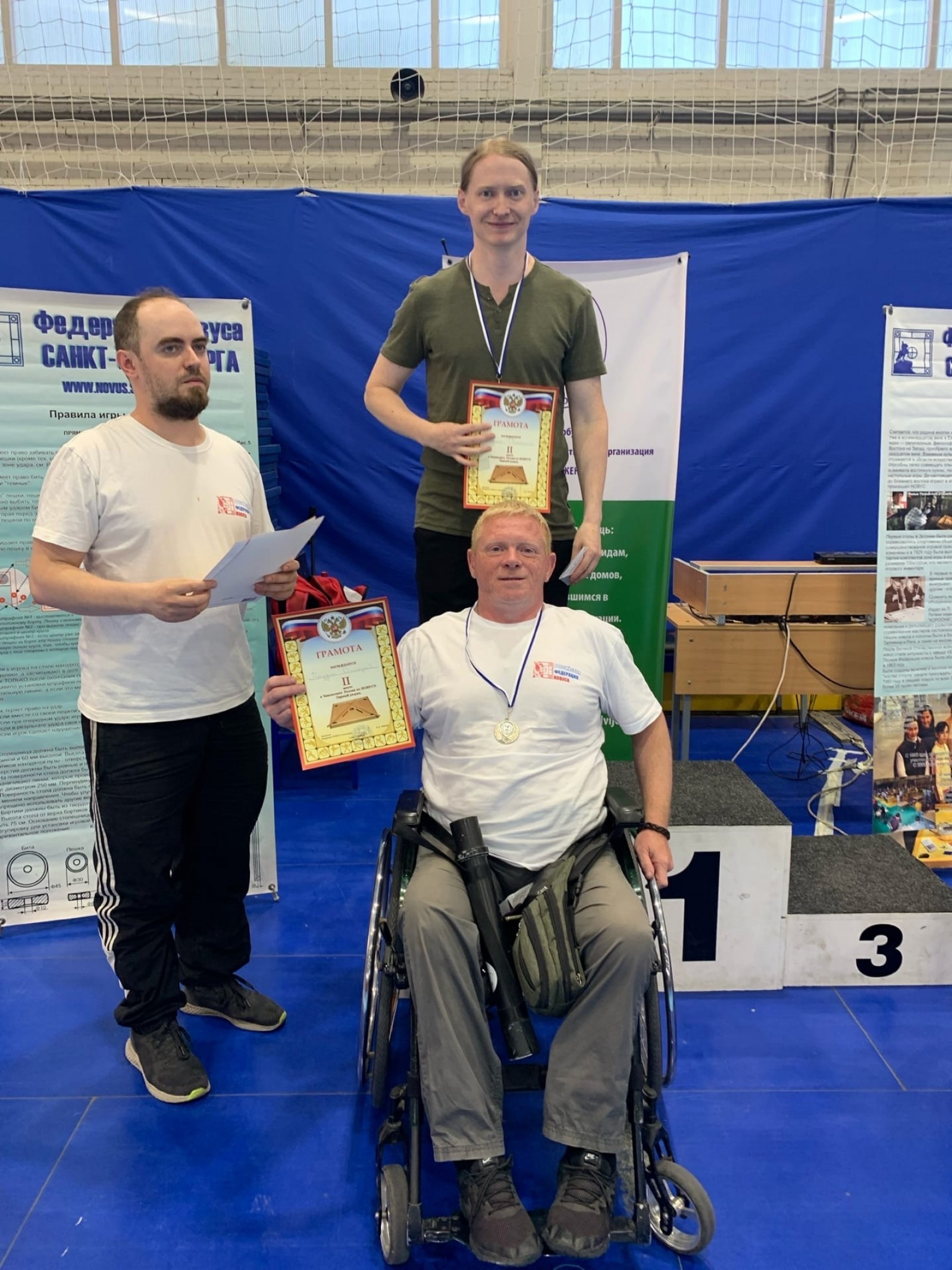 Спортсмен из Центра «Поддержка» стал серебряным призером I парного Чемпионата России по новусу среди людей с ограниченными возможностями 25.06.2022![]() 25 июня в Санкт-Петербурге, впервые, состоялся 1-й парный Чемпионат России по новусу (морской бильярд) среди людей с ограниченными возможностями, организованный Центром социальной реабилитации инвалидов и детей-инвалидов Калининского района при поддержке Центра Физической культуры спорта и здоровья Калининского района и Федерации новуса Санкт-Петербурга. В спортивном мероприятии приняла участие 21 пара спортсменов из Санкт-Петербурга, Москвы, Перми, Ленинградской области. Чемпионат проводился среди мужских и женских пар отдельно. Мужские соревнования состояли из семи туров. Вот уже несколько лет на базе Центра реабилитации инвалидов и детей-инвалидов Колпинского района «Поддержка» успешно развивается игра новус – вид спорта, улучшающий координацию движений, глазомер и наблюдательность, вырабатывающий психологическую устойчивость, выдержку и умение сосредотачиваться. На Чемпионате команду из Центра представляло 3 спортсмена: Кумбышев Александр, Игонин Дмитрий и Кривошлыков Алексей. Все они успешно продемонстрировали приобретенные навыки и умения, отличное знание правил игры, а Дмитрий Игонин стал серебряным призером Чемпионата! Это блестящий результат, который был достигнут благодаря регулярным и упорным тренировкам под руководством Суетнова Вячеслава Васильевича, инструктора-методиста по адаптивной физкультуре и адаптивному спорту Центра, и участию спортсмена в районных и городских соревнованиях, где он приобретал неоценимый опыт и оттачивал мастерство. Поздравляем Дмитрия Игонина с заслуженной наградой и желаем дальнейших успехов! А также благодарим организаторов Чемпионата за профессионализм, тёплое отношение к спортсменам этого масштабного мероприятия, которое подарило всем участникам и зрителям отличное настроение!