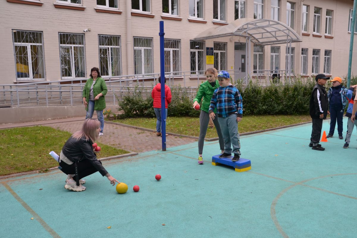 На площадке по ул. Красной, д. 12, лит. А занятие проводилось на улице перед зданием. У ребят была возможность проявить скорость, ловкость и смекалку в играх по станциям: «Меткий стрелок», «Попрыгунчики», «Песочные часы», «Пронеси не урони», «Веселый парашют». За лето все окрепли, отточили свои навыки и поэтому результаты были хорошие. Потом детям было предложено пройти в кабинет, где они приняли участие в изготовлении поделки из картона и бумаги «Воздушный шар», которую и забрали после завершения занятия. Кроме того, всем ребятам были вручены памятные подарки.