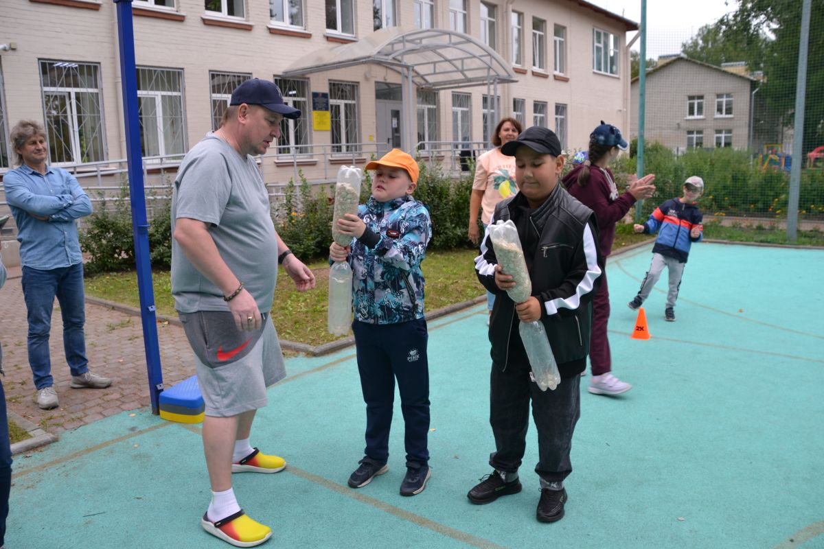 На площадке по ул. Красной, д. 12, лит. А занятие проводилось на улице перед зданием. У ребят была возможность проявить скорость, ловкость и смекалку в играх по станциям: «Меткий стрелок», «Попрыгунчики», «Песочные часы», «Пронеси не урони», «Веселый парашют». За лето все окрепли, отточили свои навыки и поэтому результаты были хорошие. Потом детям было предложено пройти в кабинет, где они приняли участие в изготовлении поделки из картона и бумаги «Воздушный шар», которую и забрали после завершения занятия. Кроме того, всем ребятам были вручены памятные подарки.