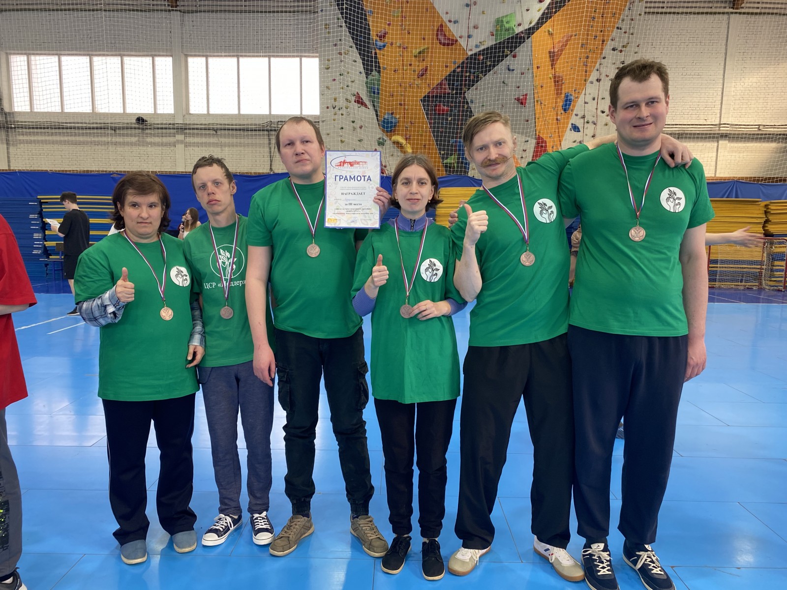 Участие в физкультурно-спортивном празднике «Шире круг» 16.03.2023Дорогие друзья! Все согласятся, что спорт играет большую роль в нашей жизни: помогает быть в хорошей физической форме, воспитывает характер и силу воли, способствует укреплению здоровья. Даже простая зарядка утром под любимую музыку заряжает энергией на весь день, дарит заряд бодрости и оптимизма! Спорт развивает быструю реакцию, хорошую координацию движений, концентрацию. Наши ребята с большим удовольствием принимают участие в занятиях по адаптивной физической культуре и различных соревнованиях. 16 марта команда нашего Центра (Кривошлыков А., Паркова О., Малышев С., Алексеев А., Цейковец О., Игонин Д.) приняла участие в физкультурно-спортивном празднике «Шире круг», посвященном Международному женскому дню 8 марта. Организатор мероприятия - Центр физической культуры, спорта и здоровья Калининского района. Соревнования проводились по дивизионам. Всего участвовало 18 команд. Наша команда заняла III место! Молодцы! Поздравляем! Все призеры были награждены дипломами и медалями соответствующего достоинства.