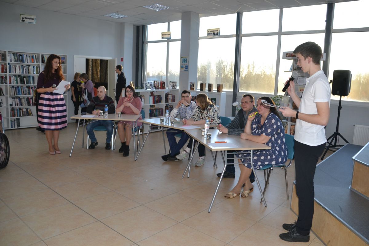 Игра-викторина "Любовь с первого взгляда" 26.02.2022 26 февраля в библиотеке ЦБС Колпинского района (филиал №6) состоялась игра-викторина "Любовь с первого взгляда". Три пары участников прошли захватывающие испытания в борьбе за призы. Добровольческое объединение "Колясочники Колпино" совместно с нашим Центром проводит это мероприятие уже третий год подряд. Весь вечер на сцене выступал танцевальный коллектив студии МЯТА Dance (музыкальный руководитель - Наследухова Елена), а завершилась встреча выступлением Зои Ивановой.