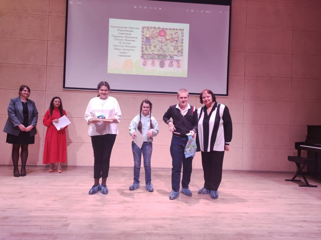 Дорогие друзья! 20 апреля состоялось награждение победителей городского творческого конкурса для детей-инвалидов «Пасха Красная», организованного центром социальной реабилитации Кировского района. Конкурс был приурочен к празднованию Пасхи и проводился в онлайн-формате. Мы рады поздравить наших ребят: Карандашева Максима, Маркиянову Светлану, Пащенко Веронику, Плохих Максима, Суворову Ксению (руководитель – Вышеславова Валентина Павловна, специалист по комплексной реабилитации социально-трудового отделения) с заслуженной победой в номинации «Изобразительное и декоративно-прикладное искусство». На суд профессионального жюри была представлена керамическая творческая работа «Христос Воскрес! Веры, милости, чудес!», полностью соответствующая тематике мероприятия и основным критериям оценки (композиция, оригинальность замысла, качество, эстетический вид, техника выполнения). Молодцы! Поздравляем!