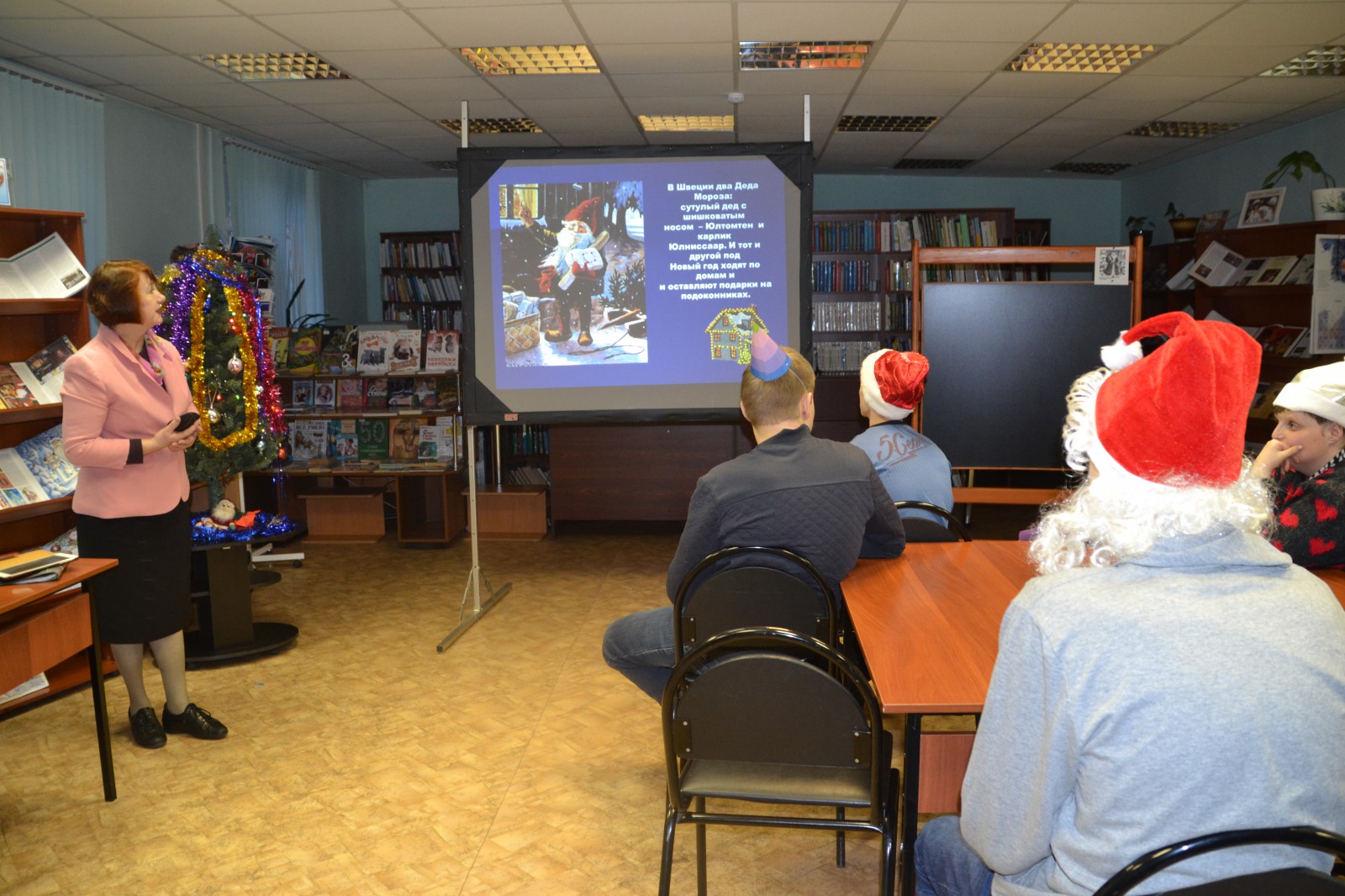Посещение детской районной библиотеки 22.12.1622 декабря наши ребята посетили детскую районную библиотеку. Занятие было посвящено предстоящему празднику и называлось «Как встречают Новый год люди всех земных широт». Сотрудник библиотеки рассказала ребятам о традициях и обычаях празднования Нового года в разных странах, о том, кто такой Дед Мороз, и чем Российский Дед Мороз отличается от новогодних персонажей других стран. Очень интересно было узнать историю возникновения новогодних игрушек и украшений. Весь рассказ сопровождался показом красочных слайдов. Ведущий предложил ребятам принять участие в веселых викторинах и конкурсах, которые вызвали большой интерес. Всем ребятам очень понравилось новогоднее занятие. Прощаясь, сотрудники библиотеки и ребята поздравили друг друга с наступающим Новым годом!