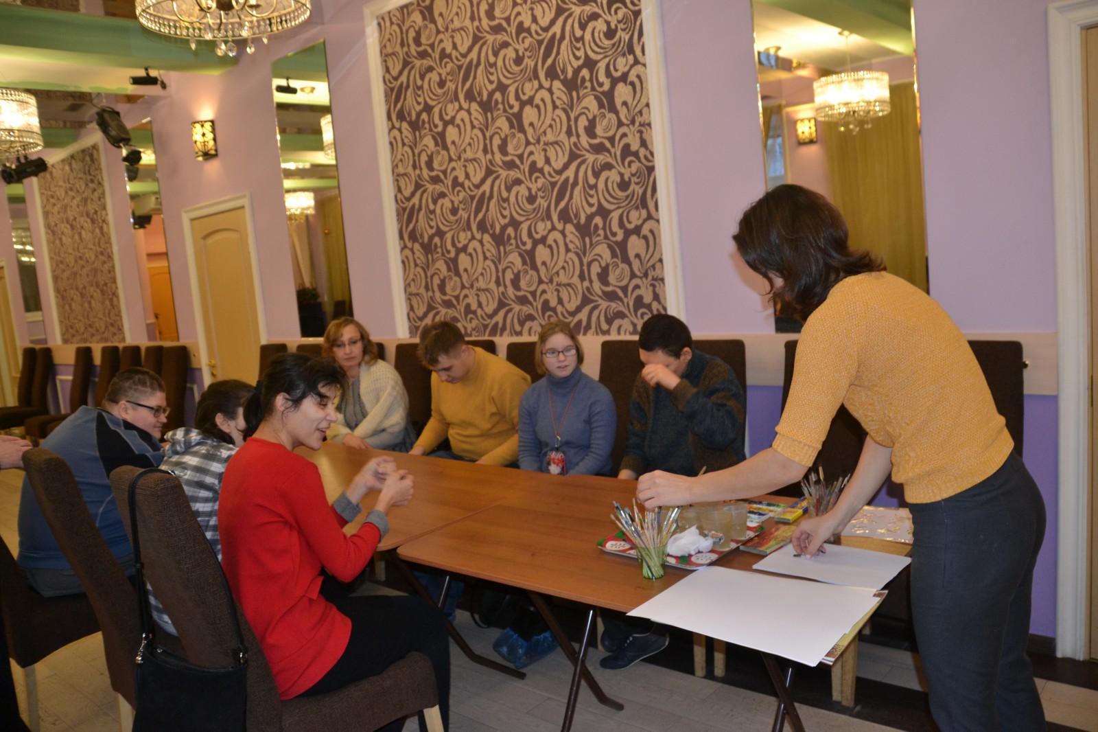 Посещение ДК "Досуг" 12.01.1712 января группа ребят нашего Центра посетила практическое занятие по рисованию с использованием акварели и восковых мелков в ДК «Досуг». Знакомство ребят со смешанной техникой началось с подробного изложения последовательности действий сотрудником Дома культуры. Было предложено «превратить» лист белой бумаги в разноцветную радугу, а затем с помощью техники «рисования брызгами» нанести свой индивидуальный рисунок. Ребята с большим энтузиазмом приступили к работе, каждому хотелось создать необычную картину. Сотрудник ДК помогала ребятам в выборе красок и рисунка. Работы у всех получились яркие и интересные. Когда рисунки были закончены, сотрудник «Досуга» предложила ребятам поиграть в очень весёлую игру. Занятие прошло очень весело и интересно!