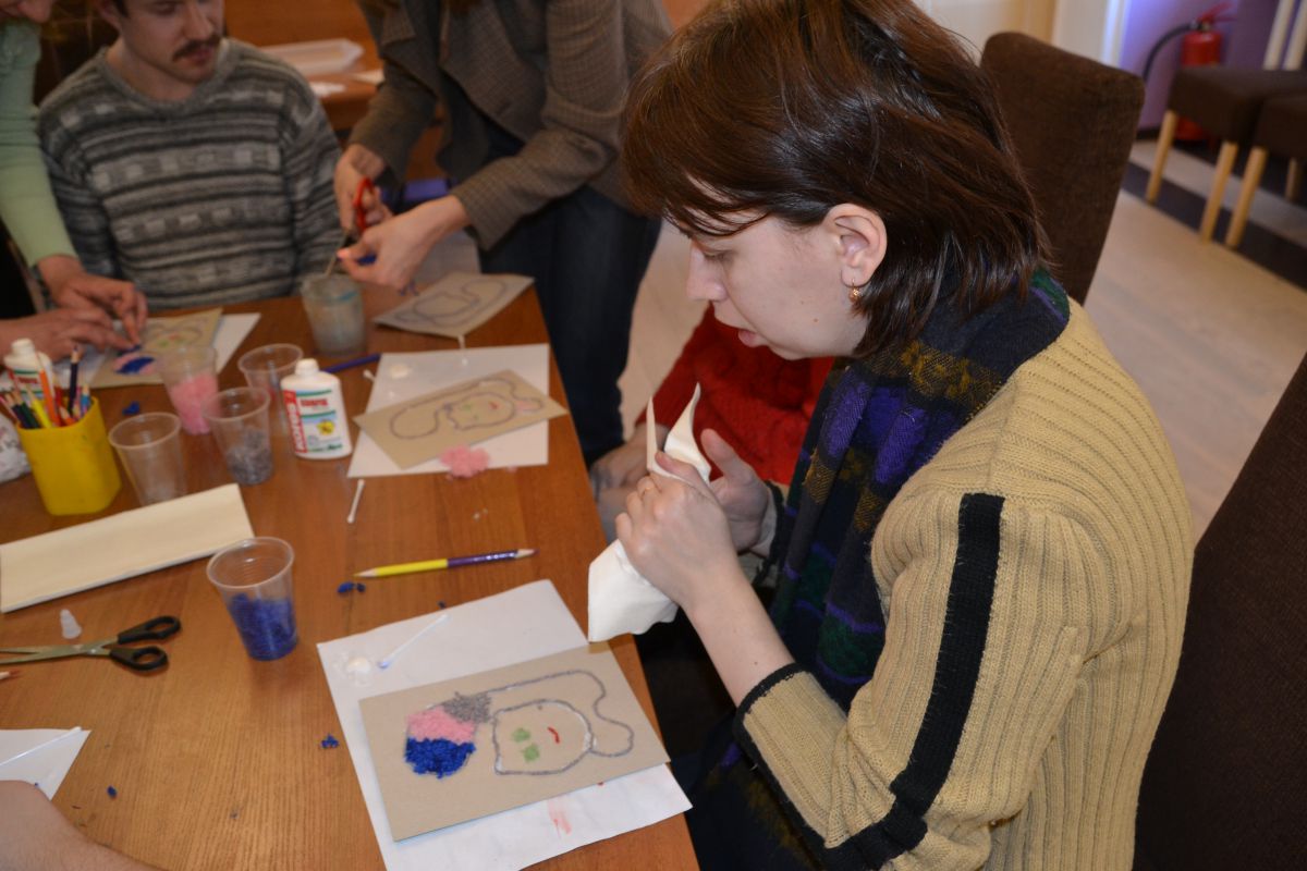 Посещение ДК "Досуг" 16.03.1716 марта состоялось посещение практического занятия по изготовлению аппликации с использованием резанных нитей «Мартовский кот» в Доме культуры «Досуг». Сотрудник ДК раздала ребятам шаблоны на картоне. Контур изображения нужно было аккуратно обогнуть нитью, используя клей, а затем последовательно выложить картинку заранее нарезанными цветными нитками. Работа закипела, каждый хотел изготовить своего разноцветного «Мартовского кота». Ребята помогали друг другу и словом, и делом. Получилось объёмно, пушисто и симпатично! Все остались очень довольны.