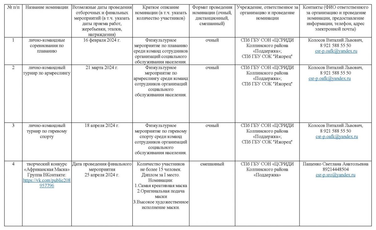 Положение о проведении физкультурного мероприятия по армрестлингу среди команд сотрудников организаций социального обслуживания населения Санкт-Петербурга в рамках X ежегодного смотра-конкурса, посвященного Дню социального работника в 2024 году